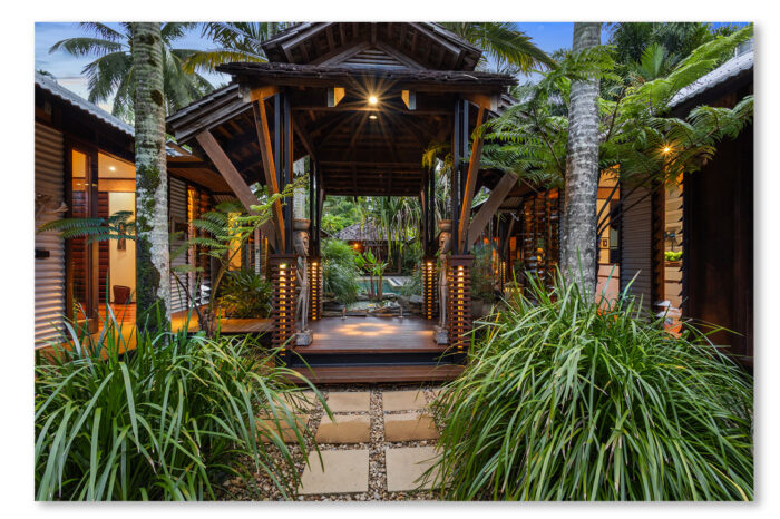 Kenge Village was inspired by the form and rhythm of an African village, softened by Balinese influence. An architecturally designed pavilion home, where elegance and tranquillity converge, one of the finest in homes in Port Douglas. At the heart of the property lies a beautiful pool, serving as a captivating centrepiece for relaxation and entertainment