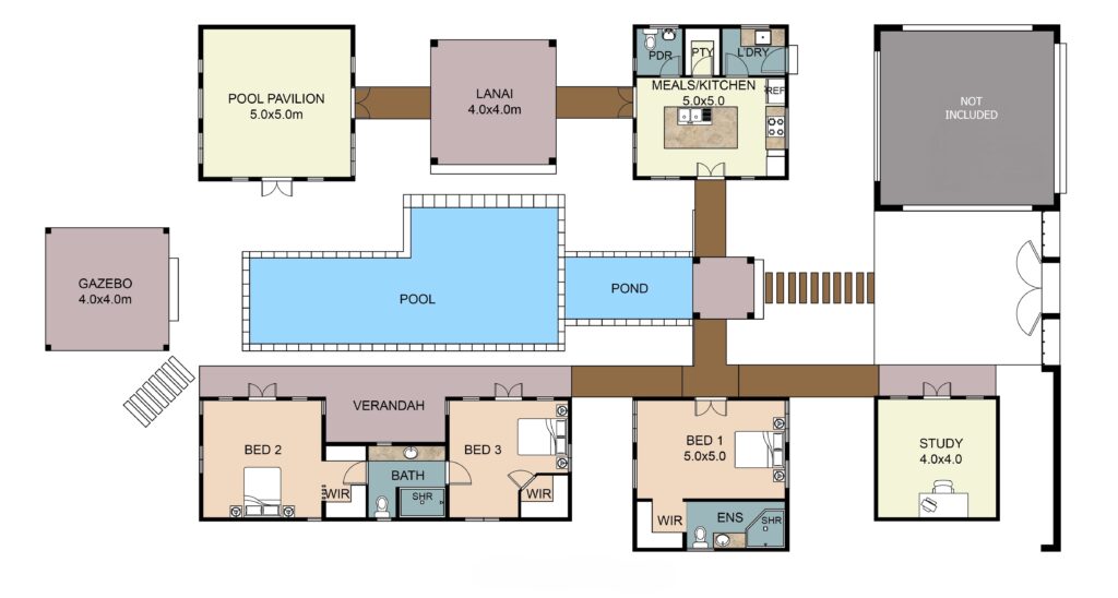 At its heart is a breathtaking central heated pool - an inviting centerpiece that blends relaxation with entertainment. Seamlessly connecting each pavilion, the pool creates a natural flow between indoor comfort and outdoor serenity.